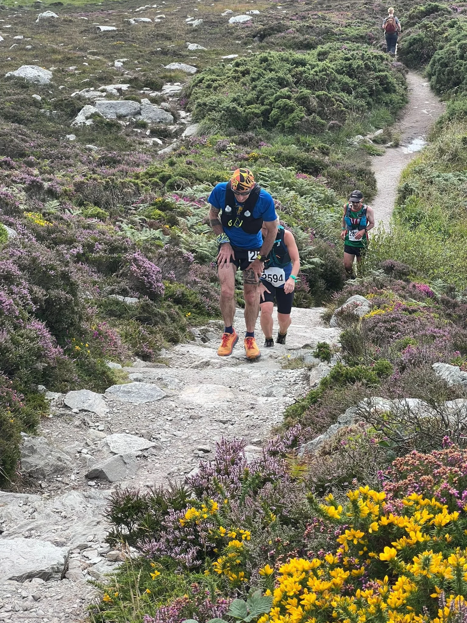 Our 25k follows an almost identical route however from Penrhos you take the route through to Trearddur Bay before tackling the range and Mynydd Twr.